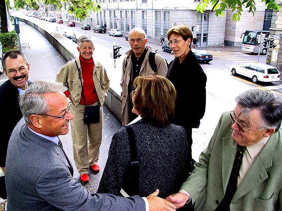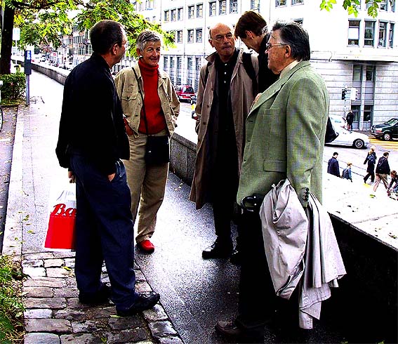 | Die ersten treffen im Hirschengraben ein! v. l. n. r. Werner, der Organisator, Monika, Hansruedi Madeleine und rechts aussen Hugo |