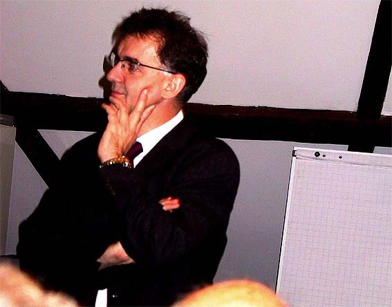 | im Sitzungszimmer wird uns das Blutspendezentrum anhand einer Powerpoint-Präsentation von Herrn Dr. Beat Frey vorgestellt |