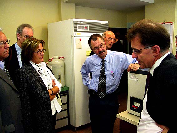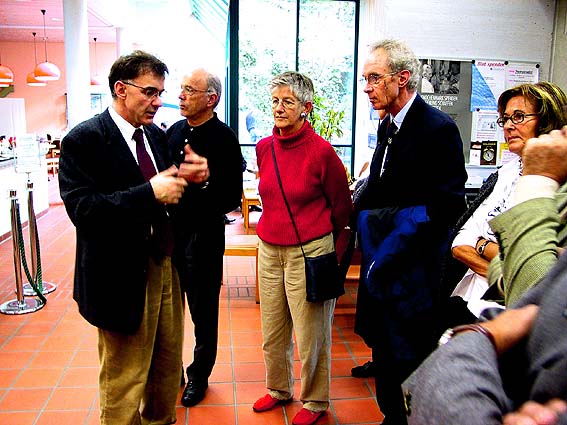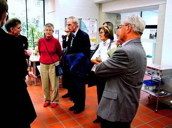 | v. l. n. r. Madeleine, Anna Marie und Willy, Hugo, Armin, Werner, Lys, Hansruedi, Dr. Beat Frey (Leiter des Blutspendezentrums, der uns hervorragend durch "sein Reich" geführt hat) und Monika |