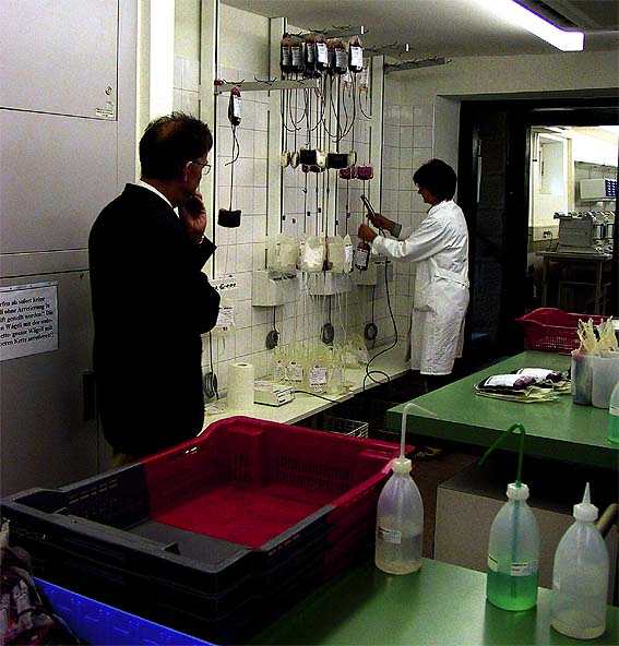 | Die verschiedenen Schritte zur Herstellung der Blutkonserven werden uns erläutert. |